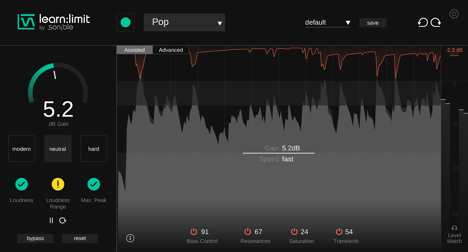 learn:limit setzt mithilfe von KI die optimalen Limiting-Parameter für deinen Track. Gleichzeitig vermittelt das Plug-in ein besseres Verständnis für Lautheit, Pegel und Dynamik – inklusive visueller Feedback-Elemente und Qualitätsindikatoren. Damit wird klar, wie sich Lautheit und Dynamik im finalen Mix gegenseitig beeinflussen.